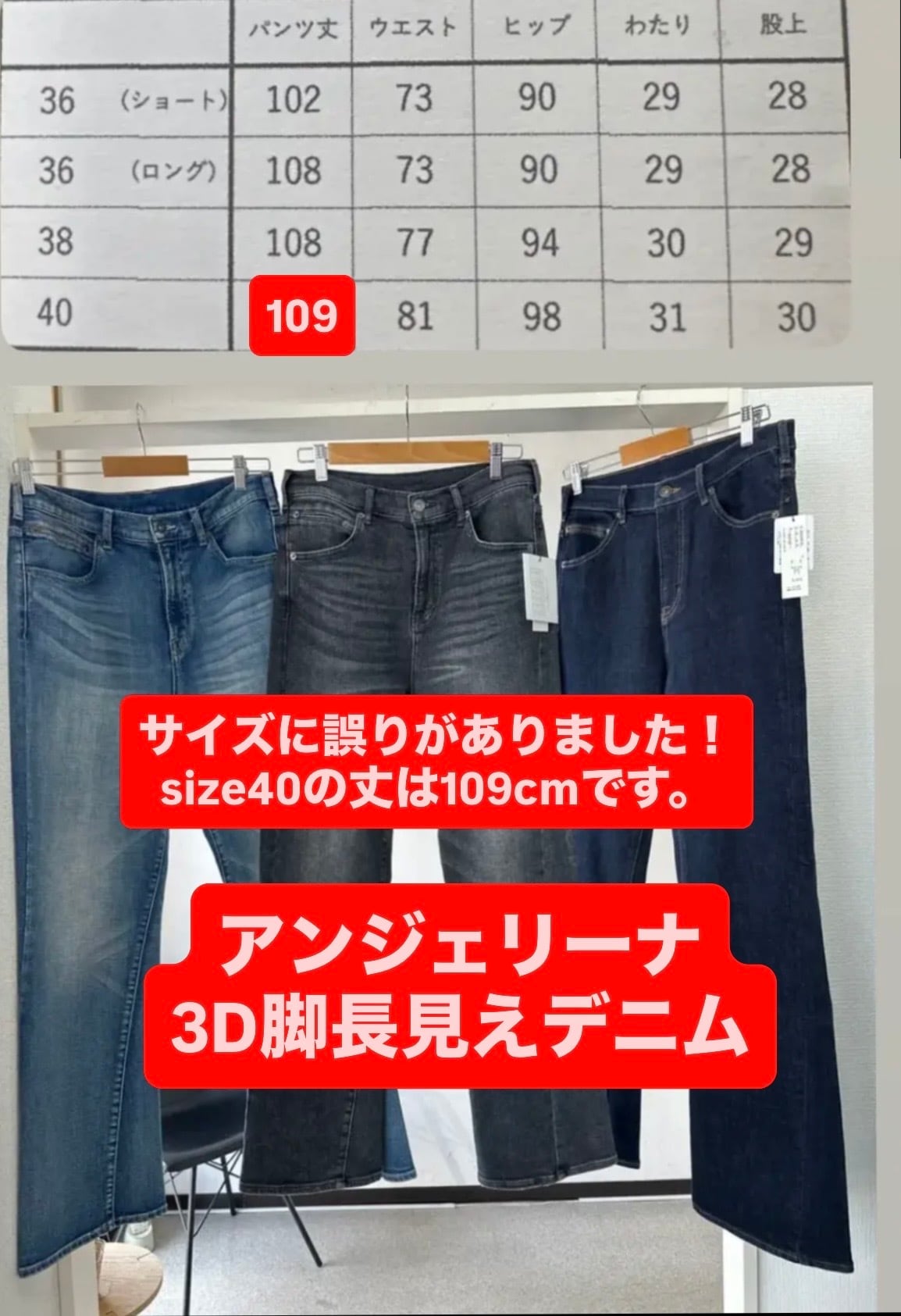12/4Live 新色ブラック、36ショート、ロングあります. アンジェリーナAW1 立体ストレートデニム 25223-9487WE 26153-9487WE 納期/即納