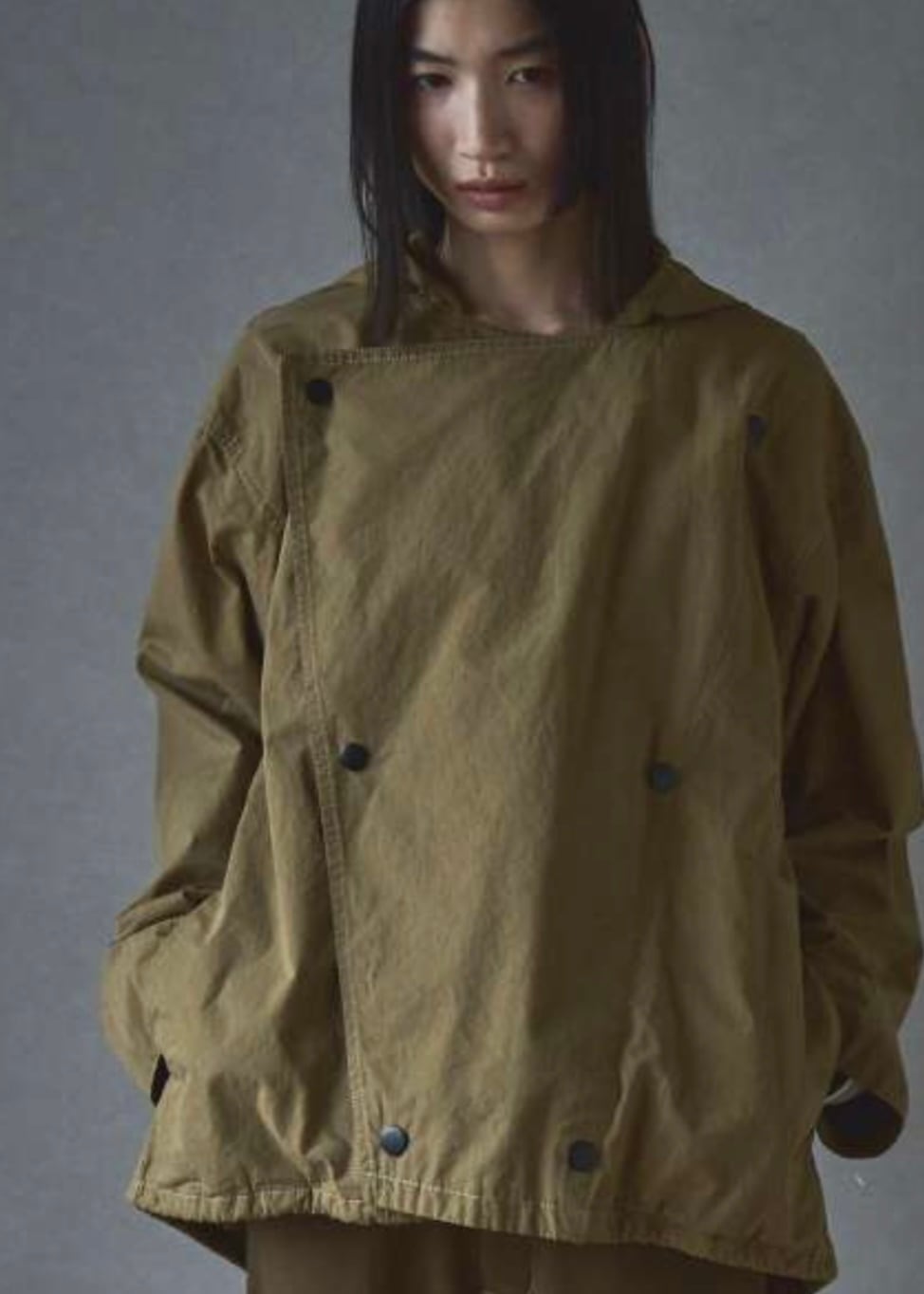 ミリタリーを今の気分で、ドレープが揺れるショートモッズパーカー。