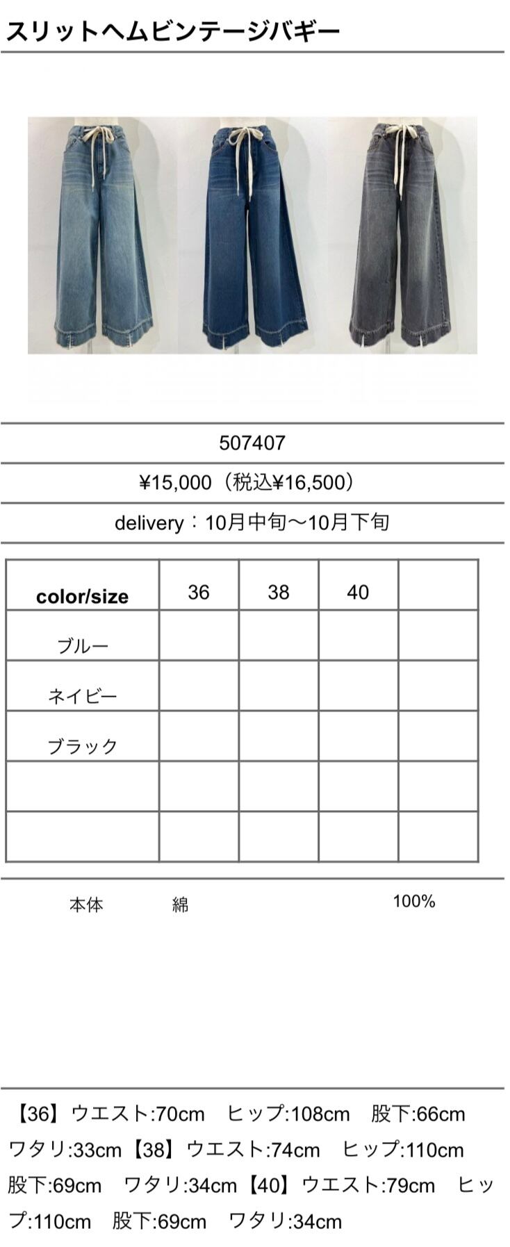 11/6Live シアンAW2 スリットヘムビンテージバギー 507407 納期即納