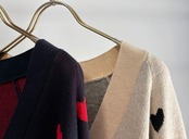 【ご予約締切10/26】 マルゴーヴィンテージSS1 ハート柄Vネックカーディガン 26019 納期/1月