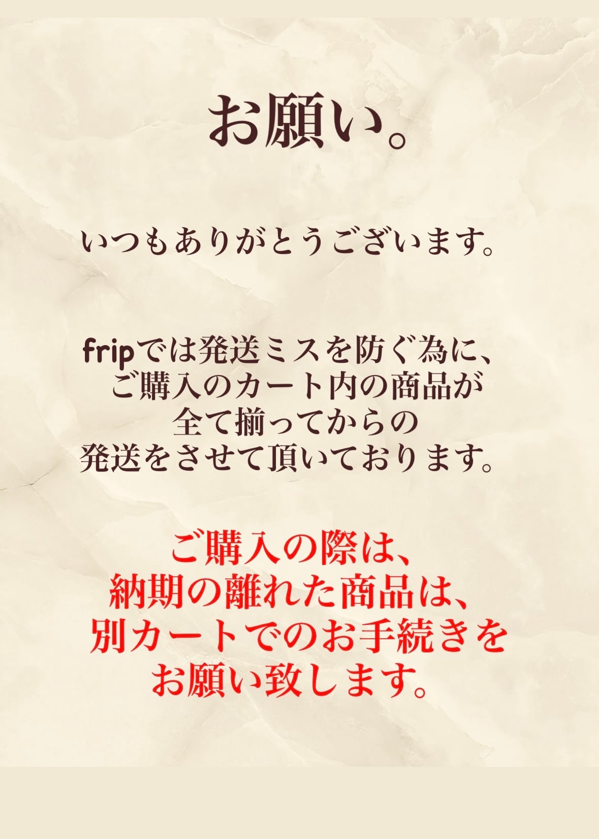 納期の離れた商品は、別カートでのお手続きをお願い致します。