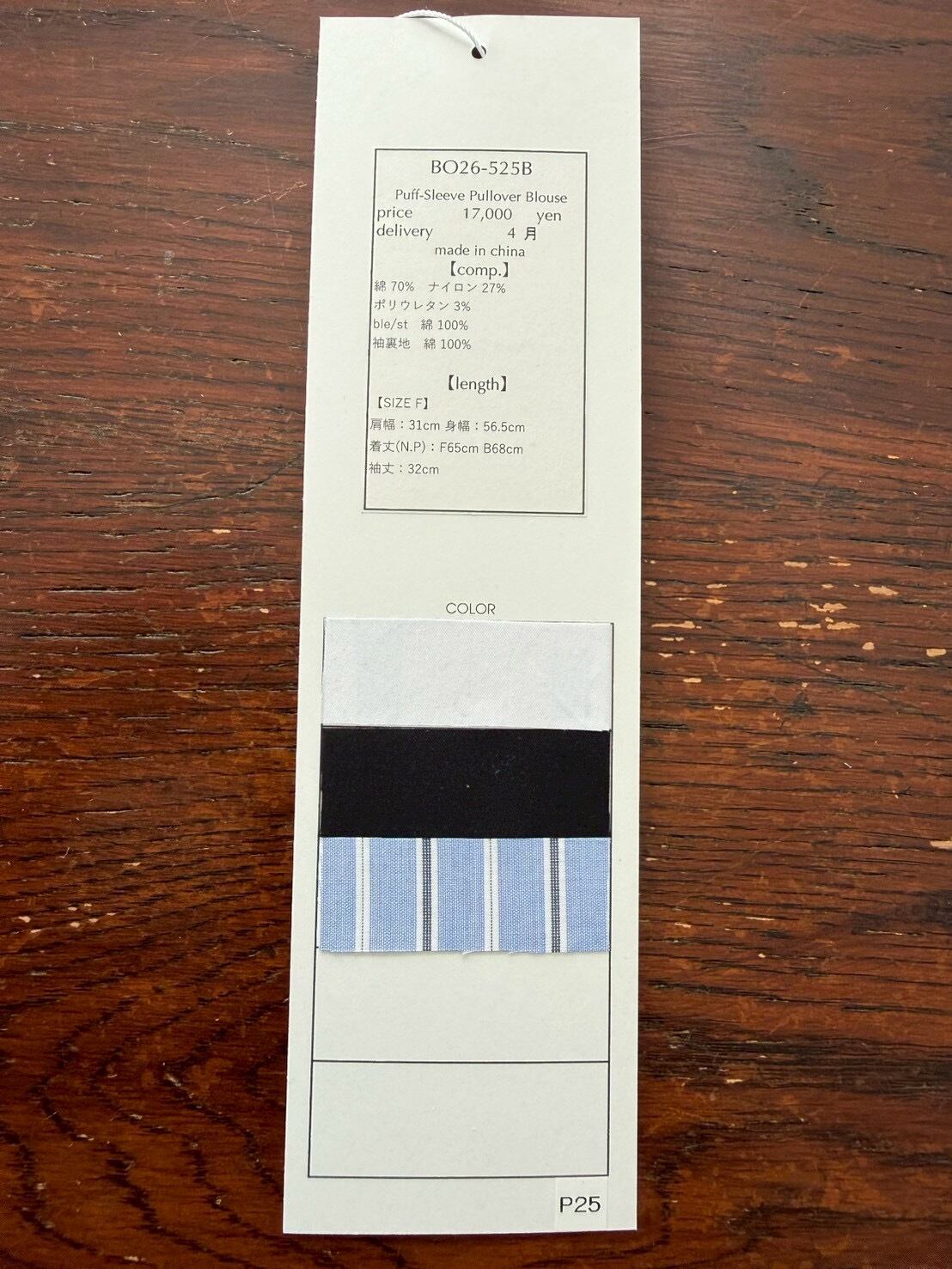 袖裏地綿:100%