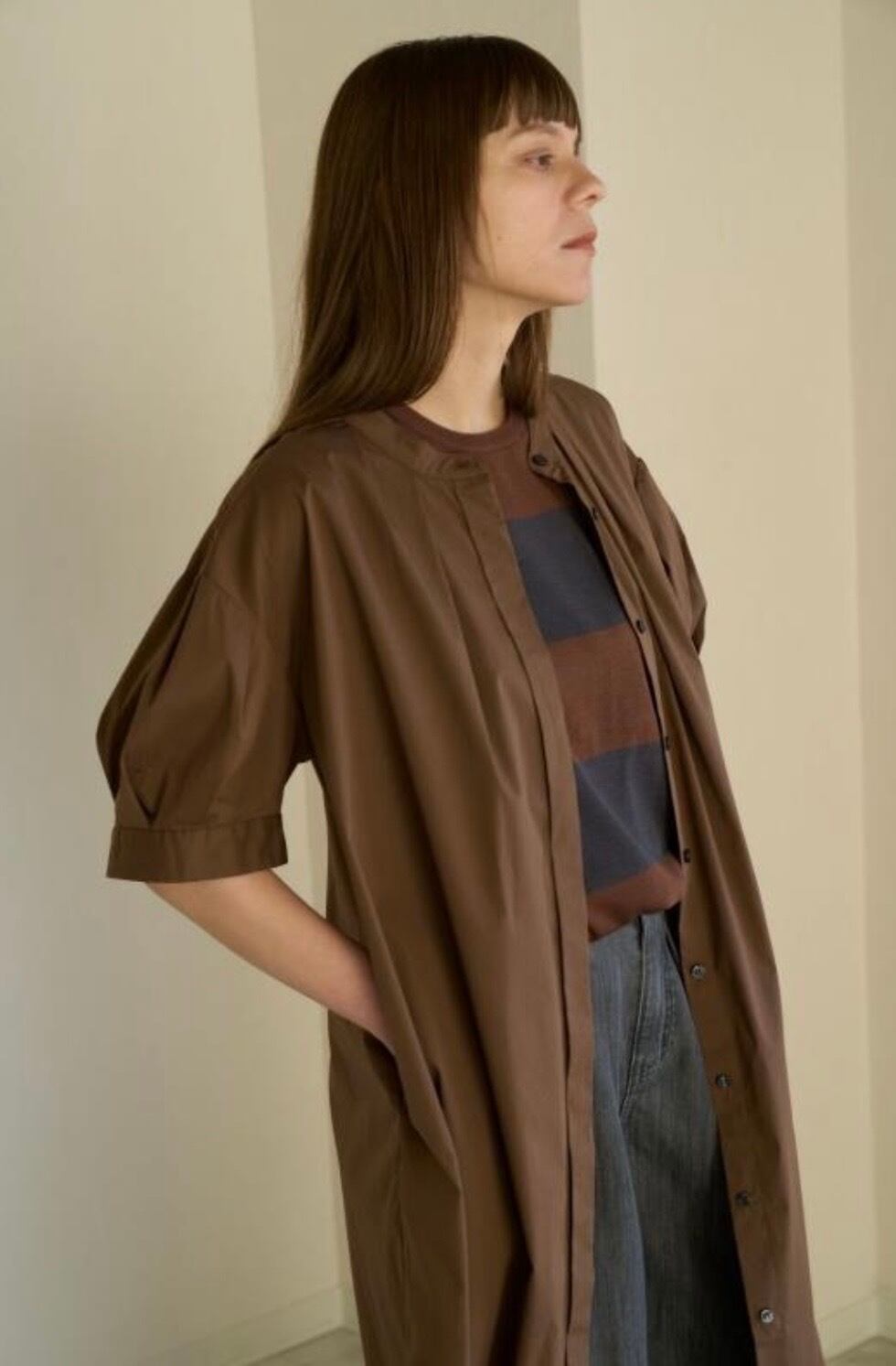【ご予約締切1/28】 オーディナリーSS2 ワイドパネルストライプスリーブレストップ 納期4/下