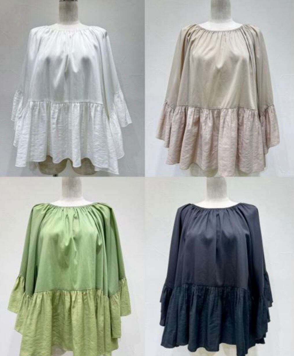 【ご予約締切2/5】 シアンSS2 ギャザーフレアオーバーブラウス 601465 納期4/下