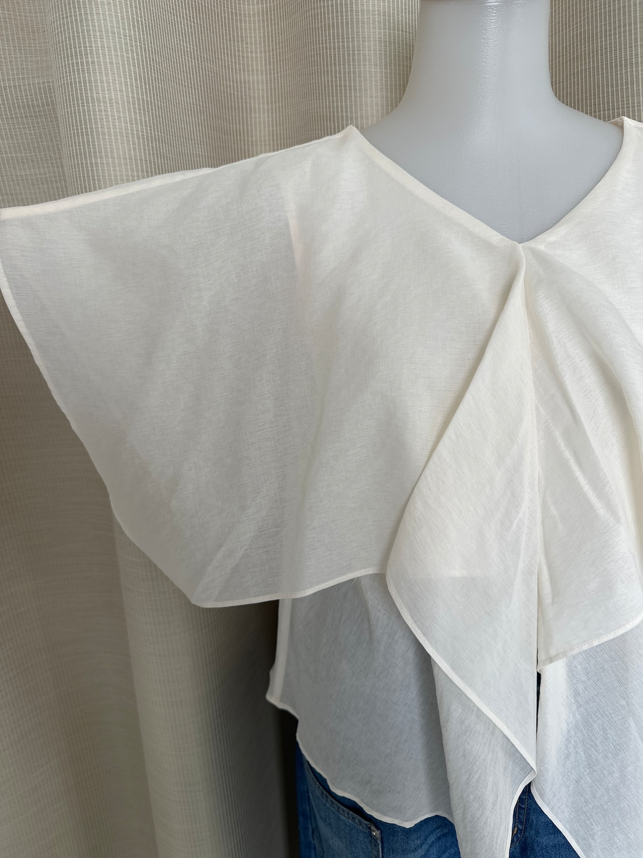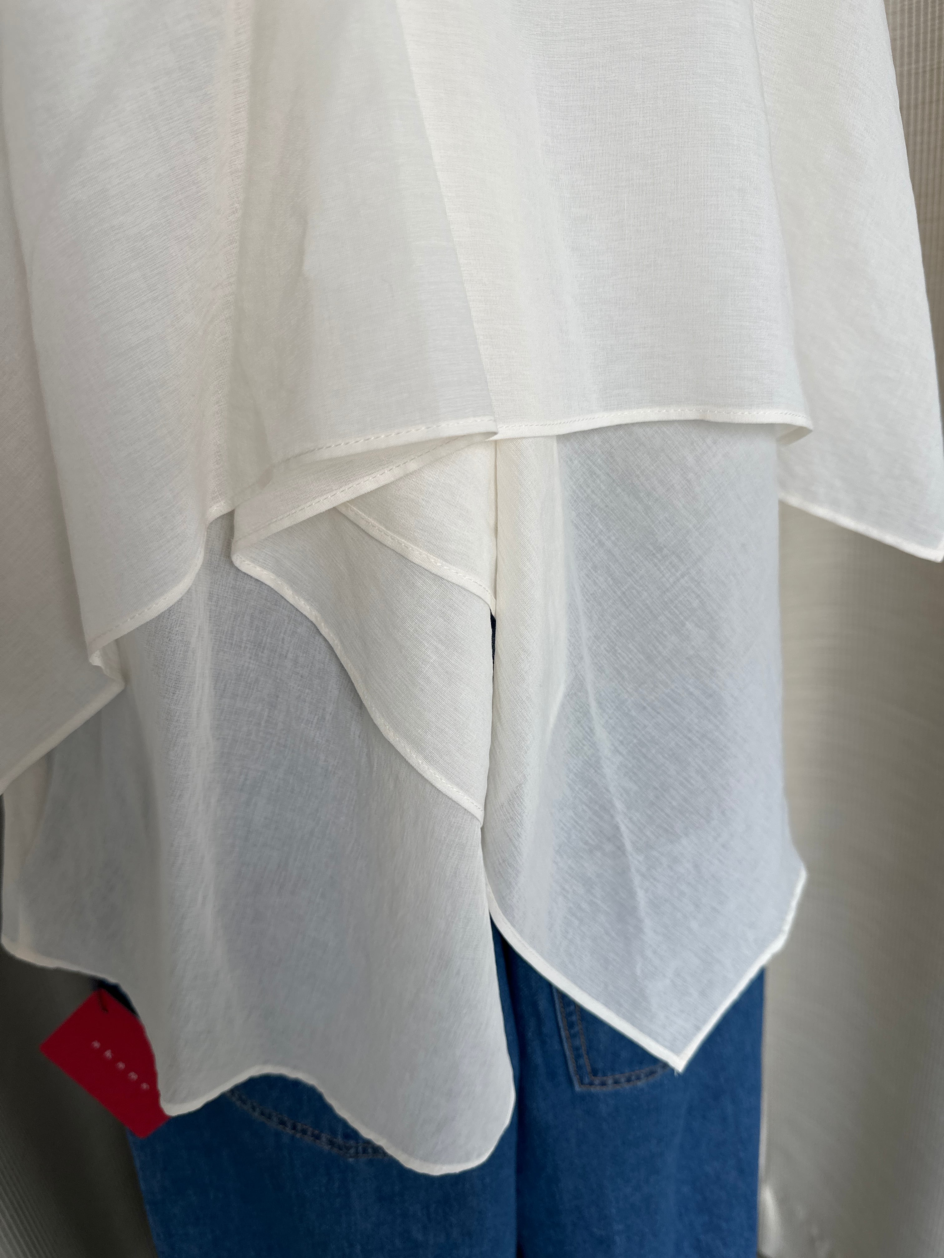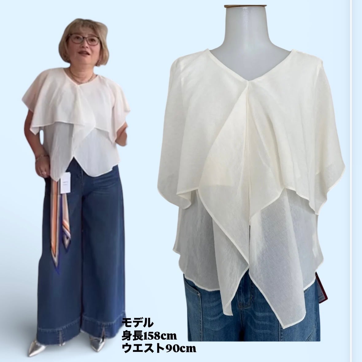 ほのかな透け感が上品に抜けをつくりながら、胸元は二重仕立てで安心感もキープ。涼やかさときちんと感、その両方を大人らしく楽しめる一枚です。