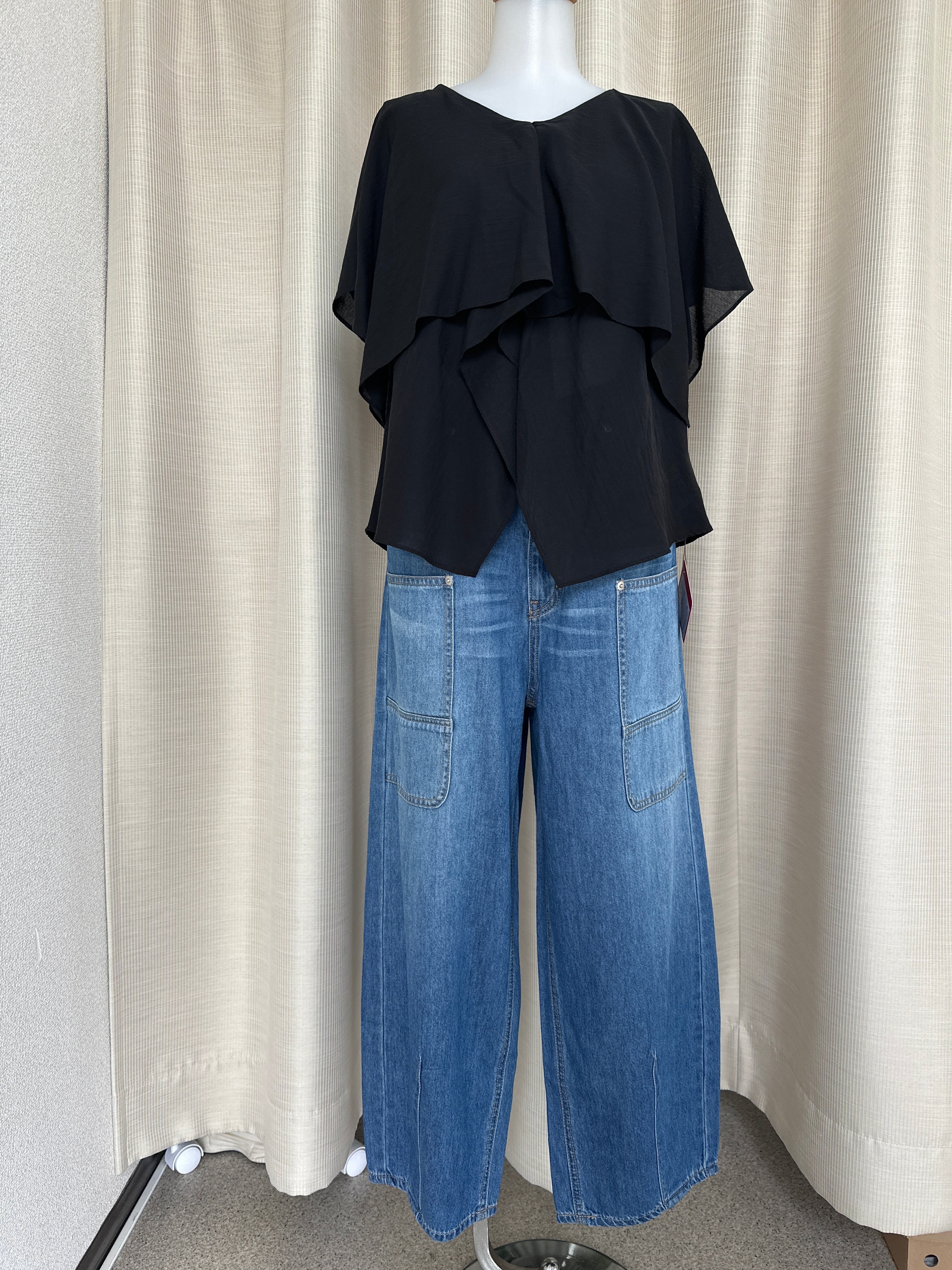 セルロースとポリエステルをブレンドした生地が、ほどよい落ち感と軽やかさを生み出し、肌に寄り添うような着心地を叶えます。