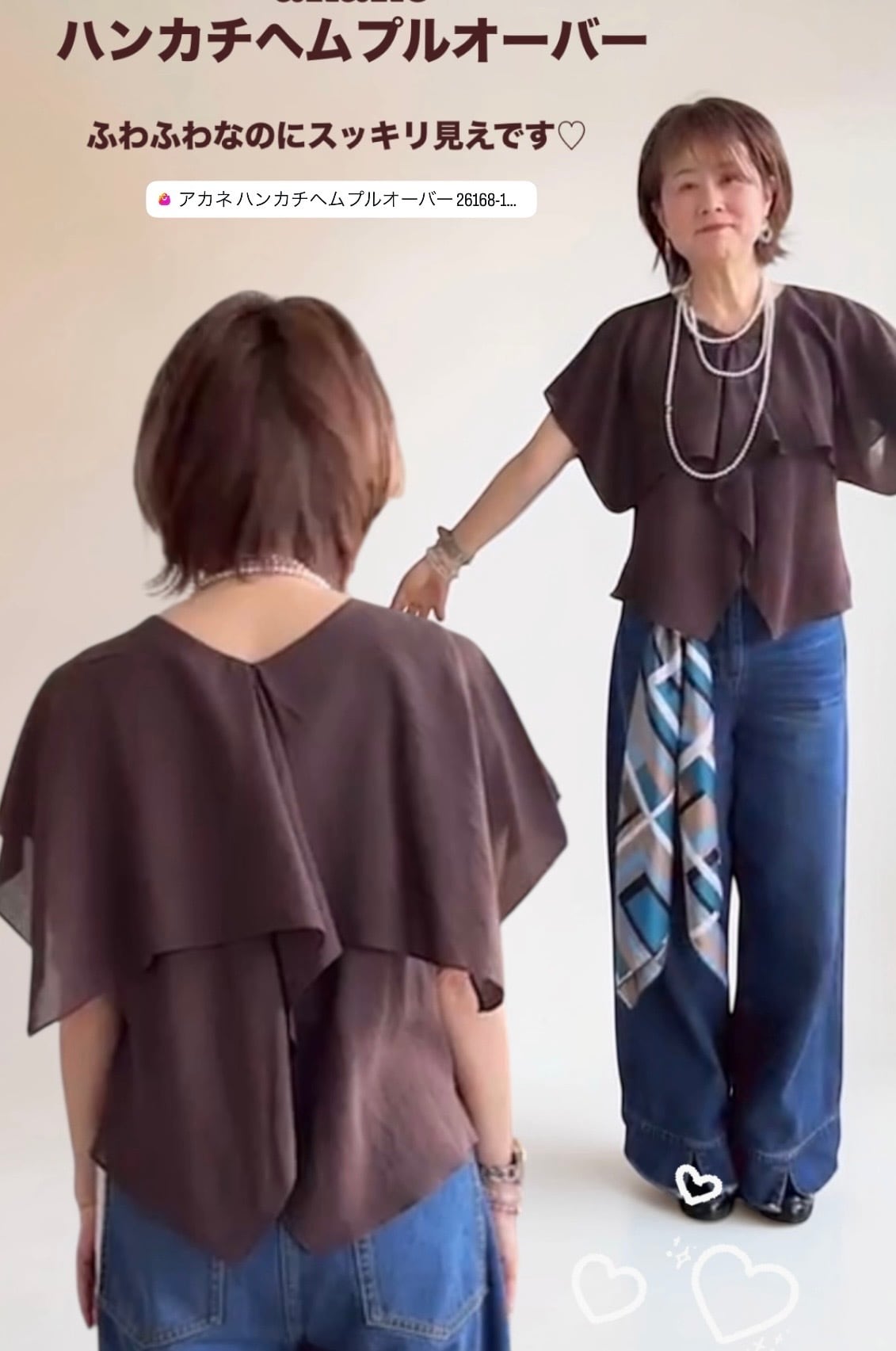 3/7LIVEアカネ ハンカチヘムプルオーバー 26168-1948 納期/即納