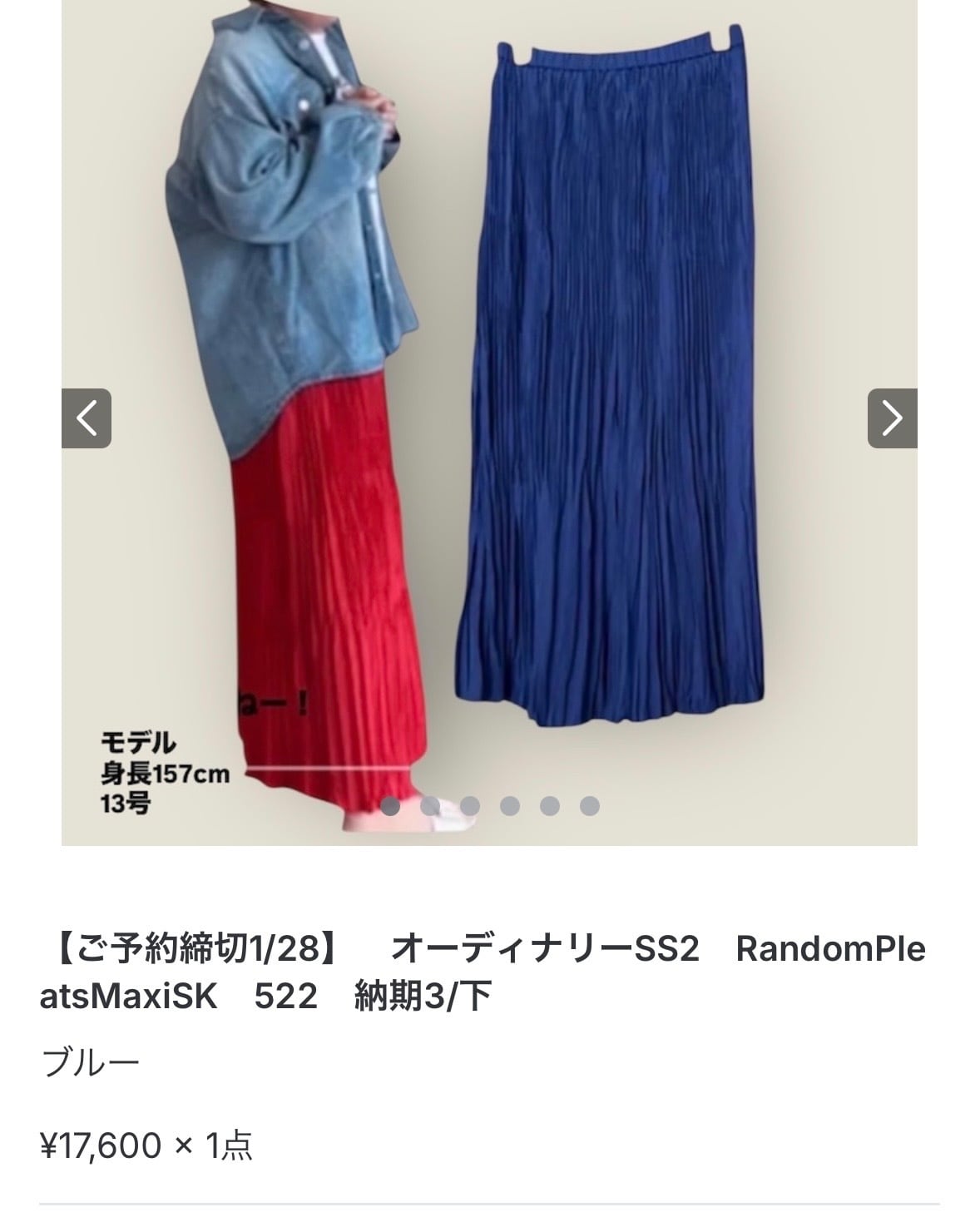オーディナリーSS2 RandomPleatsMaxiSK 522 納期3/下