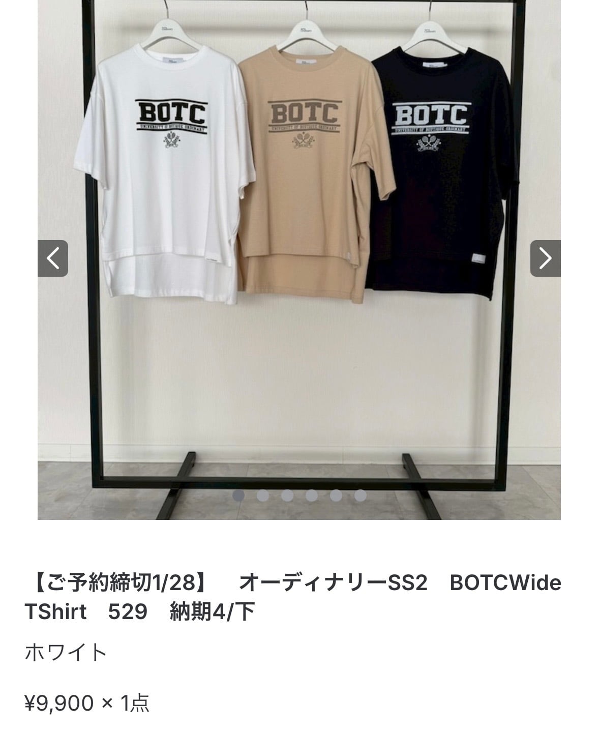 hiromi様専用! オーディナリーSS2 BOTCWideTShirt 529 納期4/下 ホワイト ¥9,900 × 1点